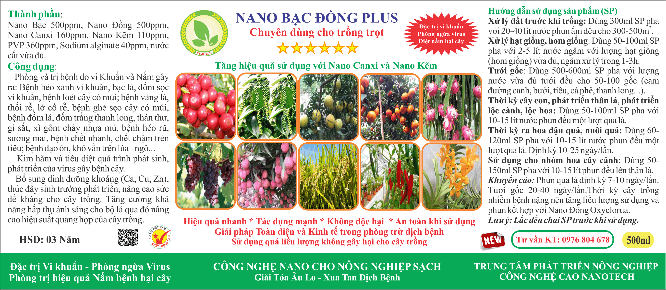 *Công dụng của nano oxyclorua đồng và Nano bạc đồng đối với thanh long MASK: Phòng và trị bệnh do nấm, vi khuẩn gây hại, Nano bạc đồng và nano oxyclorua đồng có thể trị được bệnh đốm cành, sương mai, thán thư hại thanh long. Sử dụng định kỳ, thường xuyên sẽ có tác dụng phòng trị bệnh chủ động.