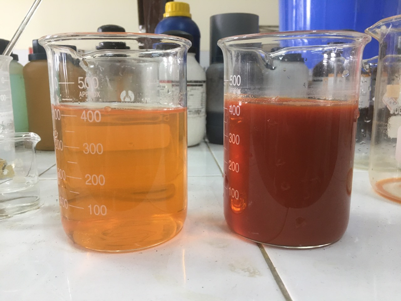 Cảm quan: Màu vàng cam dạng lỏng