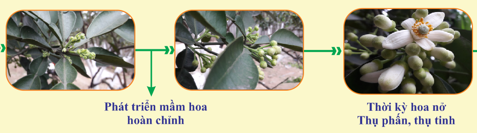 3.Thời kỳ hoa báo nở(chớm nở), hoa nở rộ, thụ phấn, hình thành quả non, nuôi quả non phát triển ổn định
