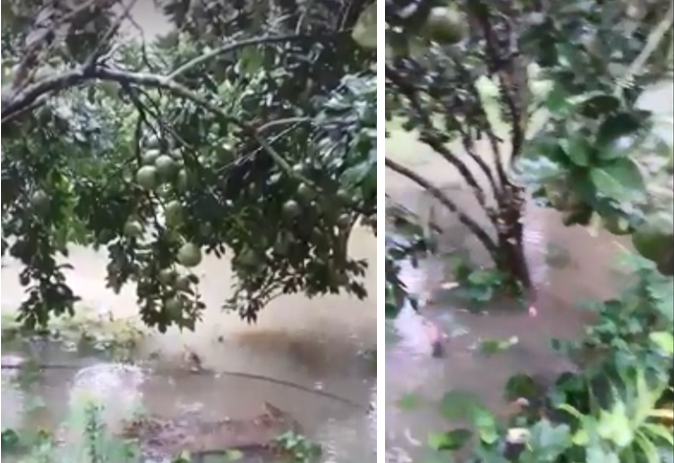 Mưa kéo dài làm vườn bưởi bị ngập úng, bộ rễ thiếu oxy, nghẹt rễ, nguy cơ thối rễ vàng lá