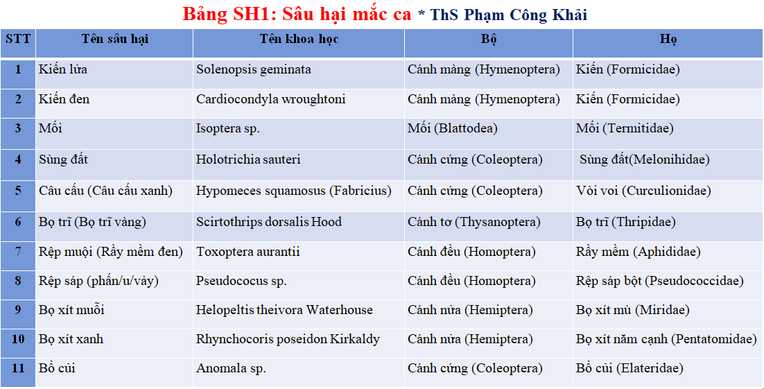 Phần 1: Sâu hại mắc ca (tổng hợp)