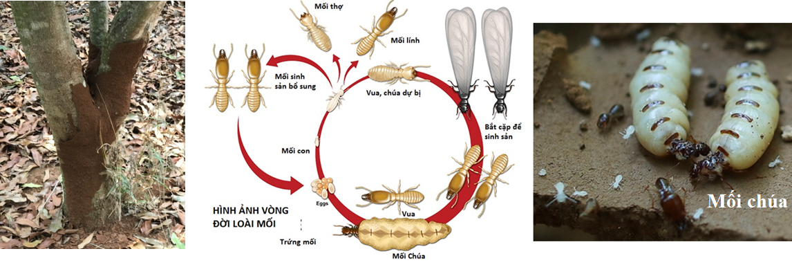 + Mối vua: bản chất là mối đực, sống cạnh mối chúa(đều được mối thợ chăm sóc, bảo vệ).