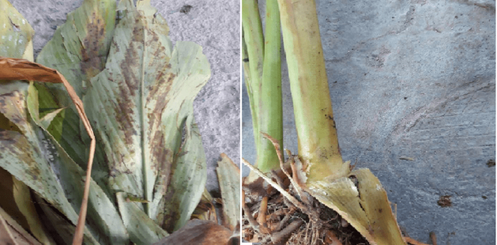 Dưới đây là hình ảnh mẫu bệnh (bệnh thối khô và thối nhũn củ nghệ):
