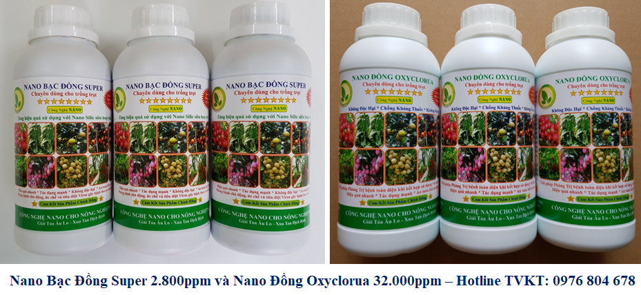 Công dụng chế phẩm nano Bạc Đồng Super: Chế phẩm nano bạc đồng super là dạng nano hợp kim của bạc và đồng tồn tại ở kích thước nano. Do có kích thước siêu nhỏ nên hạt nano hợp kim bạc đồng có tác dụng tiêu diệt nấm, vi khuẩn gây bệnh thời kỳ phân hóa mầm hoa, hoa rộ và đậu quả non. Ưu điểm vượt trội của nano bạc đồng hợp kim là:
