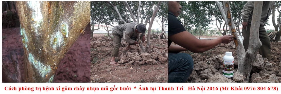 + Trị bệnh xì gôm chảy nhựa mủ thân gốc bưởi: cạo sạch vết bệnh xì gôm chảy mủ, dùng nano bạc đồng plus và nano đồng oxyclorua quét trực tiếp lên vết bệnh.