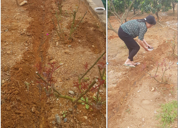 Phân bón: Sau khi cắt tỉa, nên rạch rãnh bón phân sâu xuống đất 5-6cm. Phân bón cho hoa hồng thời điểm này là phân hữu cơ ủ hoai mục kết hợp lân super. Trước khi bón hỗn hợp phân này cần trộn đều với đất sau đó mới lấp đất. Theo kinh nghiệm, phân bón cho hoa hồng thời điểm sau cắt tỉa bao gồm các nhóm phân sau:
