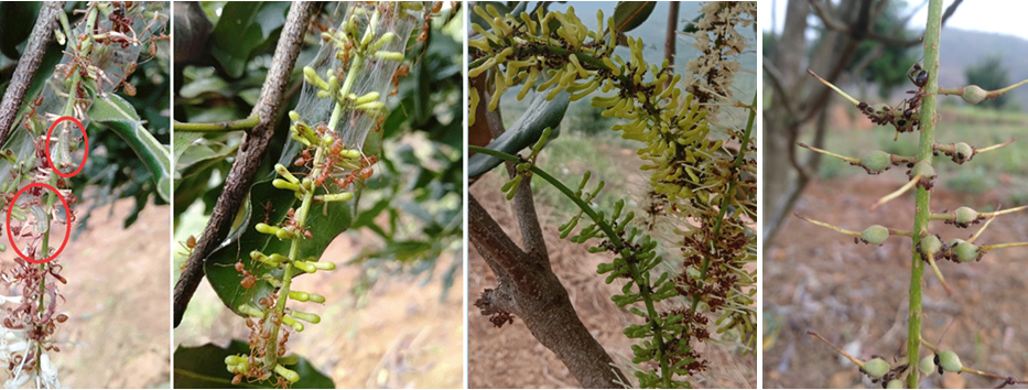 Tuy nhiên rất nhiều vườn mắc ca cho biết, thời kỳ ra hoa đậu quả non nhà vườn chăm sóc rất cẩn thận từ phân NPK, phân hữu cơ, bổ sung khoáng trung vi lượng qua lá (Ca, Bo, Mg, Cu, Zn) mà tỷ lệ đậu quả vẫn không được cải thiện.