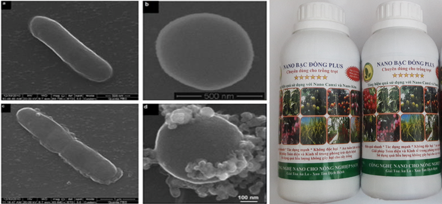 Lưu ý quan trọng: Cần phân biệt và hiểu rõ vai trò nano bạc và nano hợp kim bạc đồng trong sản xuất nông nghiệp. Dựa vào tính chất của hạt nano bạc và thực tiễn nghiên cứu nhiều năm chúng tôi thấy nano bạc được ứng dụng trong chăn nuôi thủy sản và chăn nuôi gia súc gia cầm mang lại hiệu quả kinh tế cao hơn. Nano bạc sử dụng để diệt nguồn bệnh có trong môi trường nước, khử mùi hôi tanh rất tốt. Ngoài ra xét về tính an toàn thì nano bạc còn được sử dụng trong chăn nuôi gia súc, gia cầm với tính năng vừa khử mùi hôi chuồng trại, vừa tiêu diệt mầm bệnh, có tác dụng phòng bệnh rất tốt. Hiện nay một số bà con thường dùng nano bạc để phun/tưới với mục đích phòng và trị bệnh cho cây trồng. Tuy nhiên nano bạc khi phun qua lá cho cây trồng hiệu quả thường ngắn và chúng thường bị oxy hóa trong điều kiện tự nhiên(ánh sáng, không khí) cho nên hiệu quả không tối ưu. Hơn nữa dung dịch nano Bạc - Đồng bao gồm các hạt nano hợp kim bạc đồng (Ag-Cu) phân bố trong các chất biến tính bề mặt, có tác dụng diệt khuẩn và diệt nấm gây bệnh trên cây trồng, vật nuôi nói chung. Đặc trưng cơ bản của dung dịch nano hợp kim Ag-Cu này là các Vi Khuẩn có hại gây bệnh trên cây trồng được diệt bởi Nano Bạc, còn các loại Nấm gây bệnh trên cây trồng được diệt bởi các hạt Nano Đồng. Do đó nano hợp kim bạc đồng mang tính toàn diện, bền vững và hiệu quả vượt trội hơn so với nano bạc, nano đồng. Tuy nhiên tùy mục đích sử dụng, rất nhiều trường hợp có thể kết hợp sử dụng nano bạc với nano bạc đồng mang lại hiệu quả sử dụng rất cao. Cây trồng được sử dụng nano bạc và nano bạc đồng sẽ tạo ra hiệu quả cộng hưởng như: tăng hiệu suất quang hợp, chống lại nấm khuẩn gây bệnh, kéo dài thời gian bảo quản nông sản sau thu hoạch…