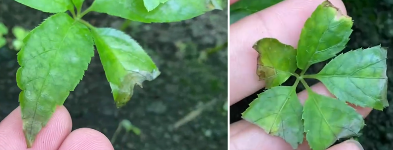 Triệu chứng bệnh thán thư trên cây sâm Ngọc Linh: