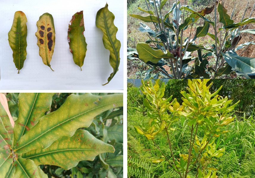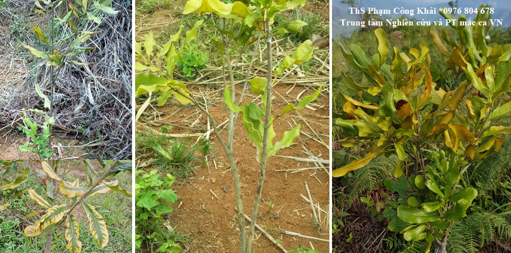 Mắc ca bị bệnh vàng lá thối rễ, cây còi cọc, chậm phát triển