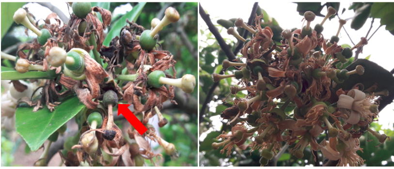 Lưu ý: Thời điểm cây bắt đầu ra mầm hoa cần giữ ẩm cho đất liên tục, không để đất khô, cây thiếu nước hoặc đất quá thừa ẩm sẽ ảnh hưởng đến phát triển mầm hoa, giảm tỷ lệ thụ phấn, đậu quả. Ngoài ra thời kỳ phân hoá mầm hoa, phát triển chùm hoa, hoa rộ, quả non cần chú ý phòng trị nhện và sâu hại tổng hợp (đặc biệt là nhóm côn trùng chích hút).