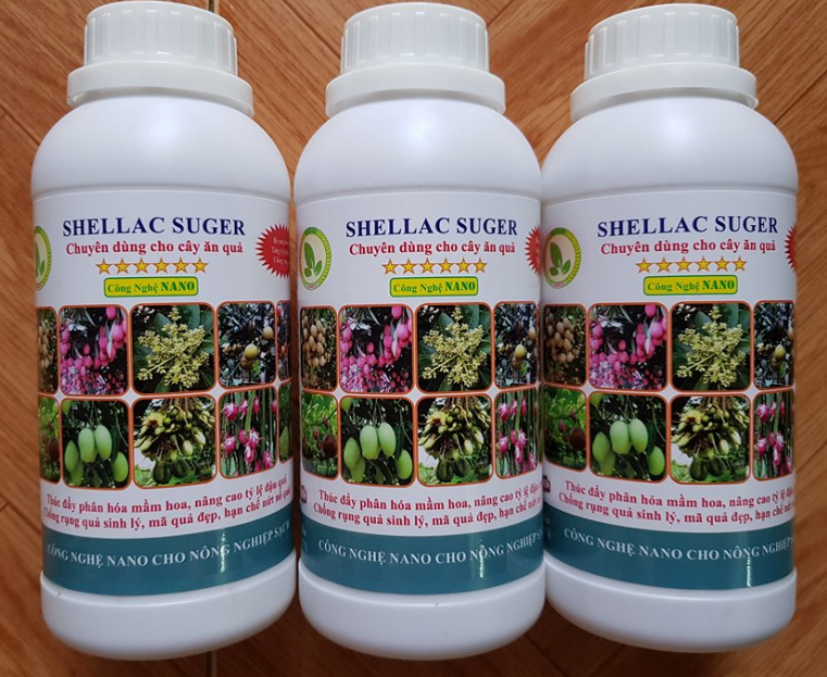 + Chế phẩm Shellac suger: Tăng cường quá trình phân hóa mầm hoa, nâng cao tỷ lệ đậu quả, thúc đẩy nuôi quả non, cùng với nano canxi giúp chống rụng quả rất hiệu quả.