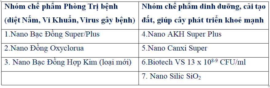 Nhóm 2: Nano AKH Super plus, nano Silic, Biotech.