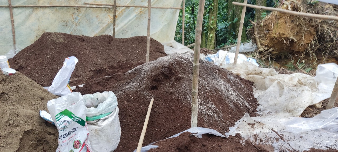 Xử lý mùn hữu cơ bằng chế phẩm Biotech Pro trước khi trồng sâm Ngọc Linh