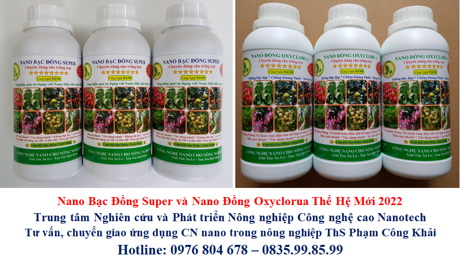 Dùng 30-40ml chế phẩm nano Silic SiO2 kết hợp 50-80ml nano bạc đồng super cộng thêm 20-30ml nano Đồng oxyclorua pha với 15-20 lít nước phun đều thân lá.