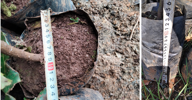 + Không bị xói bầu, hở cổ rễ, đất mặt phủ kín cổ bầu.