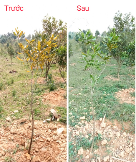Mắc ca phục hồi sau khi tưới 3 lần chế phẩm nano AKH Super Plus MCD