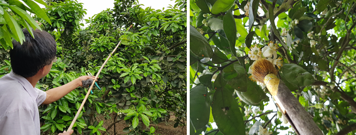 Thụ phấn bổ sung cho bưởi vào sáng sớm, tăng tỷ lệ đậu quả trong điều kiện thời tiết bất lợi