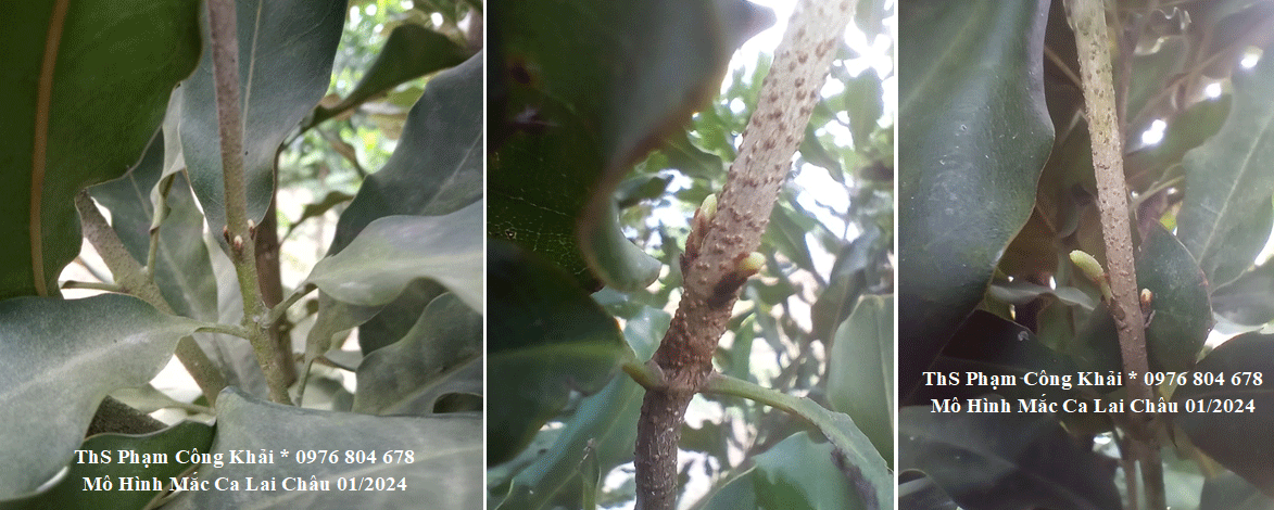 Thứ ba: Phun chế phẩm Shellac Suger định kỳ, kiểm soát tốt tỷ lệ cành ra đọt non, hạn chế phát triển đọt non giai đoạn tiền phân hoá mầm hoa và sau khi phân hoá mầm hoa, thúc cây mắc ca ra hoa đồng đều, chùm hoa to khoẻ. Lưu ý nhà vườn không nên lạm dụng Lân và Kali cao để ép cây mắc ca ra hoa, không áp dụng các biện pháp xử lý rễ, gây tổn thương cơ giới bộ rễ (mắc ca khác với cây có múi, nhãn vải,..).