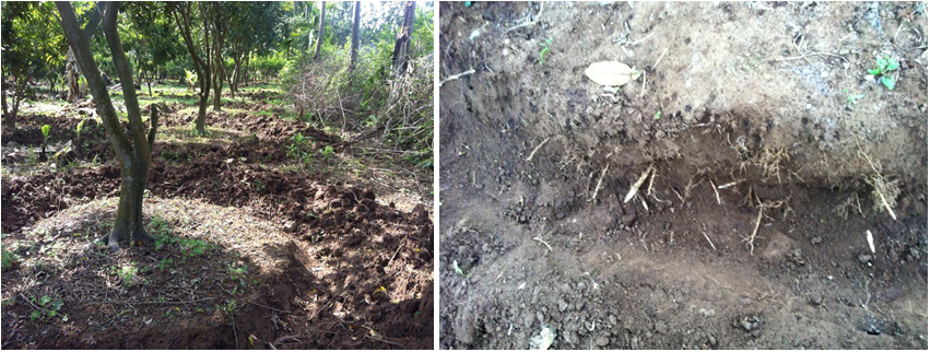 Xử lý bộ rễ: cuốc xới xung quanh theo hình chiếu tán, đảm bảo phải làm đứt phần rễ non, phơi khô đất (xiết nước), không tưới nước vào giai đoạn đầu khi mới xử lý rễ