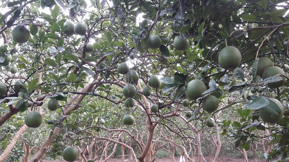 Một vườn bưởi diễn đạt tiêu chuẩn, quả đang trong giai đoạn phát triển