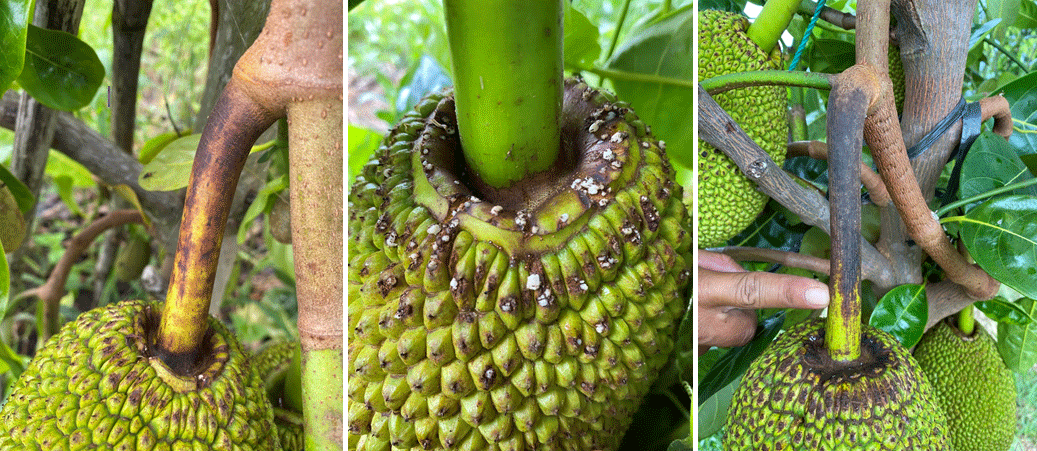 Ngoài hiện tượng xơ đen, vấn đề nứt quả cũng thường xảy ra, nhất là đối với mít năm 2-3. Sự phát triển thiếu cân đối, dinh dưỡng không đầy đủ, kết hợp điều kiện thời tiết mưa ẩm kéo dài làm cho quả bị nứt tỷ lệ khá cao.