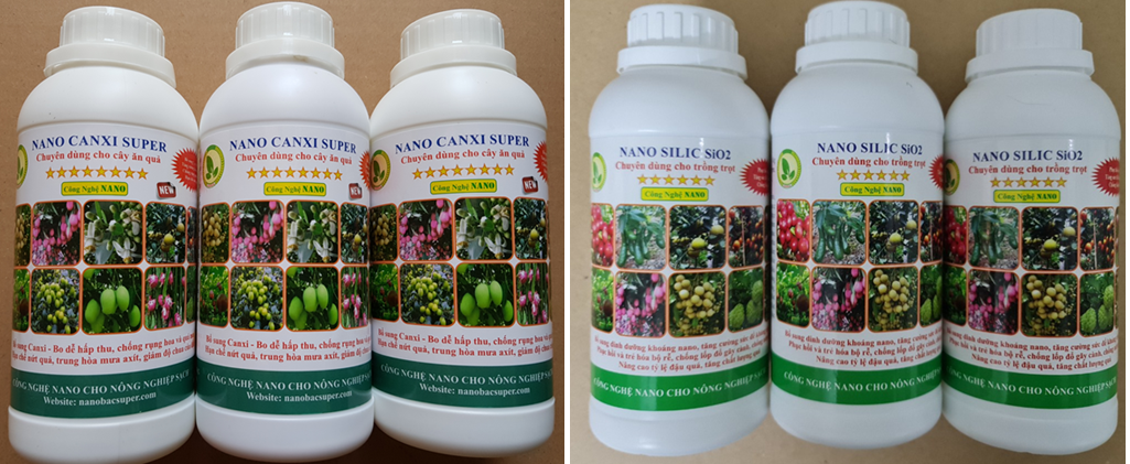 Công dụng nano Canxi Super: Nano Canxi Super có chứa nano Canxi cacbonate, Bo, Ca và trung vi lượng dạng nano dễ hấp thu, giúp cuống dẻo dai, ức chế hình thành tầng rời, chống rụng quả, chống mưa acid, giúp trái phát triển ổn định, hạn chế hiện tượng cháy múi và nứt dọc cuống do thiếu Canxi-Bo. Bo tham gia vào quá trình phân chia tế bào giúp ổn định thành tế bào làm cho cuống trái chắc hơn hạn chế tình trạng tháo khớp và rụng trái non. Nano Bạc Đồng Super, nano Đồng Oxyclorua tiêu diệt nấm khuẩn gây bệnh, không gây nóng cây, không ảnh hưởng tới sinh trưởng trái non (chú ý phòng trừ bọ trĩ gây hại trái non).