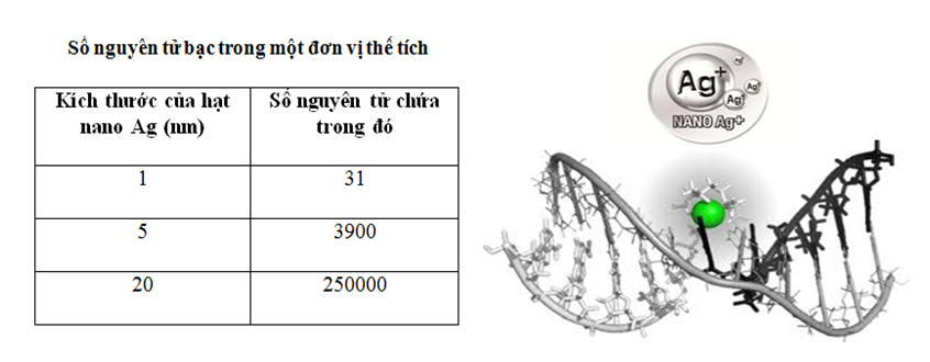Ba là: Nano Bạc liên kết với DNA của tế bào vi sinh vật và ức chế chức năng sao chép của chúng, kìm hãm chúng, không cho chúng phát triển mạnh.