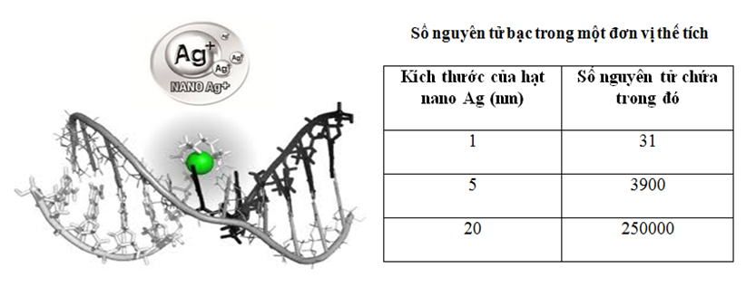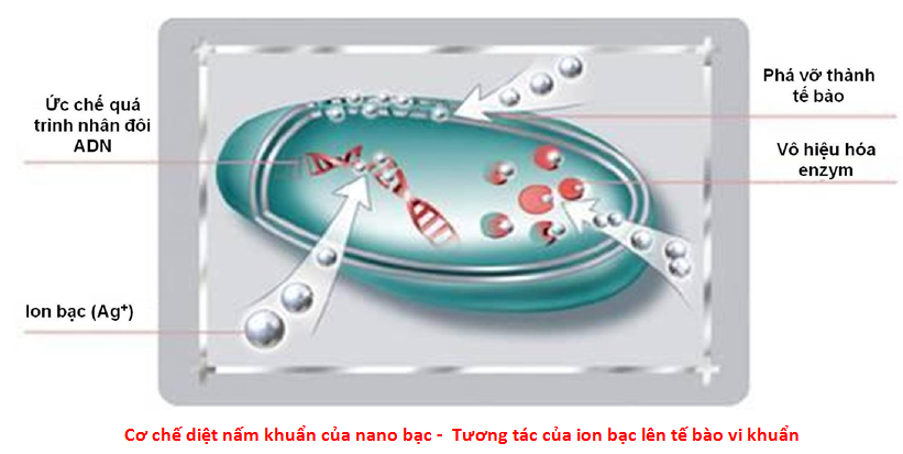 Ba là: Nano Bạc liên kết với DNA của tế bào vi sinh vật và ức chế chức năng sao chép của chúng, kìm hãm chúng, không cho chúng phát triển mạnh.