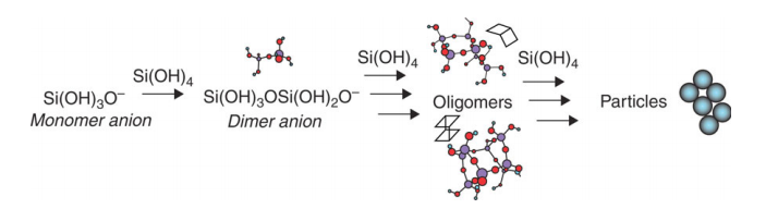Quá trình polyme hóa axit monomeric silicic to để tạo nano silica
