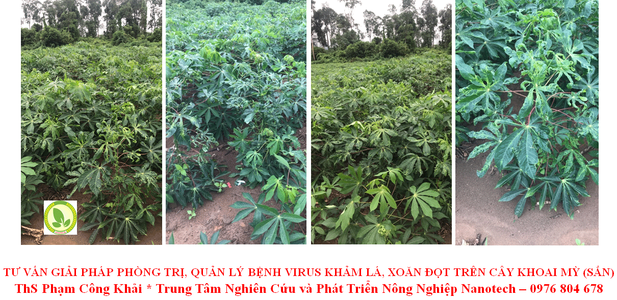 + Chọn giống kháng bệnh, sạch bệnh. Một số diện tích trồng khoai Mỳ tại Gia Lai, Kon Tum, Bình Phước bị nhiễm virus từ rất sớm, điều đó chứng tỏ hom giống nhiều khả năng đã bị nhiễm virus từ trước đó. Chính vì vậy trước khi trồng bà con nên xử lý hom giống bằng các chế phẩm đặc trị, tiêu diệt virus (xử lý hom giống trước khi trồng đại trà). Cụ thể: Dùng 500ml nano Bạc Đồng Super kết hợp 500ml nano Đồng oxyclorua pha với 150-200 lít nước ngâm xử lý hom giống trong thời gian 20-30 phút (trước khi trồng). Hoặc cũng có thể xếp hom tập trung vào một chỗ Dùng 500ml nano Bạc Đồng Super kết hợp 500ml nano Đồng oxyclorua pha với 100 lít nước phun ẩm đều lên toàn bộ thân hom sao cho hỗn dịch nano tiếp xúc đều với thân hom(các hạt nano bạc đồng, nano đồng oxyclorua sẽ tiêu diệt, ức chế sự phát triển của virus gây bệnh tồn lưu trên hom giống – tránh lan truyền bệnh virus qua hom giống).