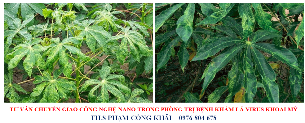 Lưu ý: Để các hạt nano Bạc Đồng, nano Đồng oxyclorua có khả năng tiêu diệt virus cực mạnh, chống kháng thuốc tốt bà con cần sử dụng nồng độ thích hợp. Nếu nồng độ quá thấp sẽ không có tác dụng mạnh lên virus gây bệnh. Nano Bạc đồng plus (1600ppm) thường được sử dụng diệt nấm khuẩn, phòng bệnh tổng hợp chủ động. Tuy nhiên để tiêu diệt virus triệt để, chống tái nhiễm cần phải sử dụng nano Bạc Đồng Super nồng độ cao (2.500-3.000ppm) kết hợp với nano Đồng Oxyclorua nồng độ 29.000-30.000ppm. Không chỉ riêng bệnh khảm lá virus khoai mỳ mà với sự kết hợp giữa nano Bạc Đồng Super và Nano Đồng Oxyclorua có thể tiêu diệt và ức chế được các chủng virus gây bệnh trên các đối tượng cây trồng khác như: khảm lá virus cà chua, ớt; bệnh virus phấn trắng chanh dây; bệnh vàng lá gân xanh trên cây có múi, bệnh khảm vàng lá đu đủ...