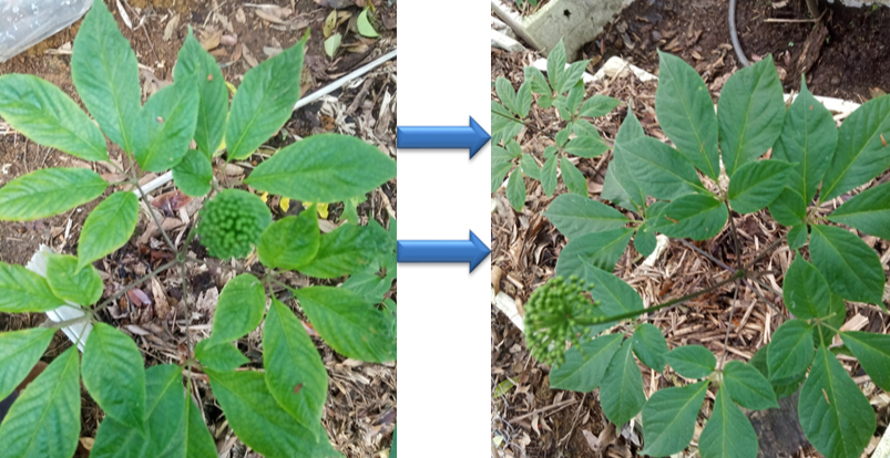 Sử dụng chế phẩm nano canxi super, Shellac Suger có tác dụng chống rụng hoa và quả trên cây sâm Ngọc Linh (40ml/bình 20 lít phun qua lá, định kỳ 7 ngày/lần).
