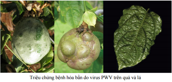 Bệnh cứng vỏ trái, bệnh xoăn lá do virus Passion fruit woodiness, virus Papaya leaf curl.