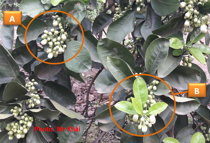2.Chăm sóc bưởi diễn thời kỳ phân hóa mầm hoa, phát triển hoa (hoa chưa nở)