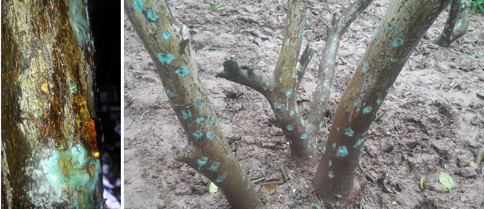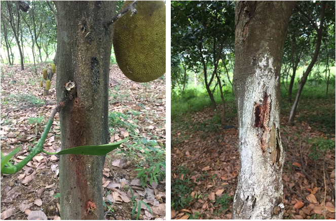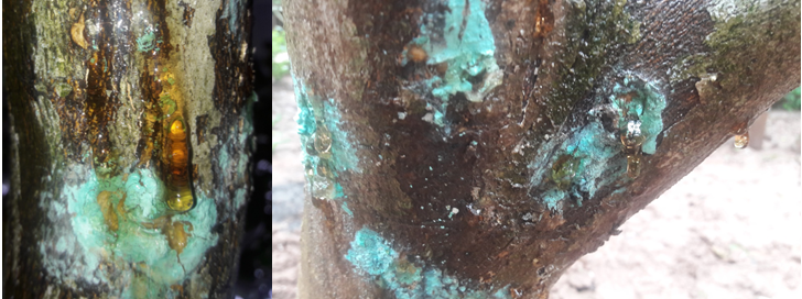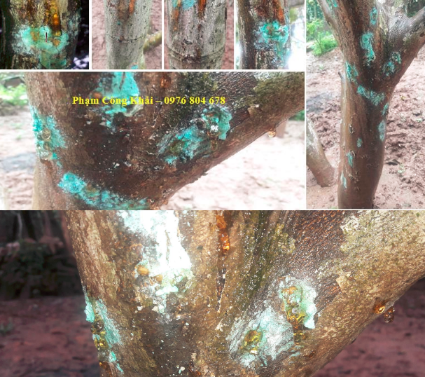 Khi thấy triệu chứng bệnh ở gốc (xì gôm, chảy nhựa mủ) tức là bệnh đã phát triển tương đối mạnh, lúc này phần vỏ cây và gỗ phía trong đã bị gây hại. Do đó tại những phần vỏ cây bị bệnh bà con tiến hành các bước xử lý sau đây: